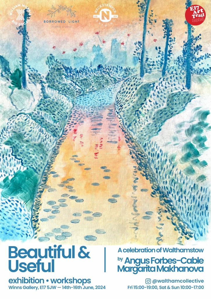 The ‘Beautiful and Useful’ exhibition is a debut show of Margarita Makhanova and Angus Forbes-Cable. The exhibition reflects on William Morris’s idea of practical objects being aesthetically appealing and celebrates the landscapes of North-East London.