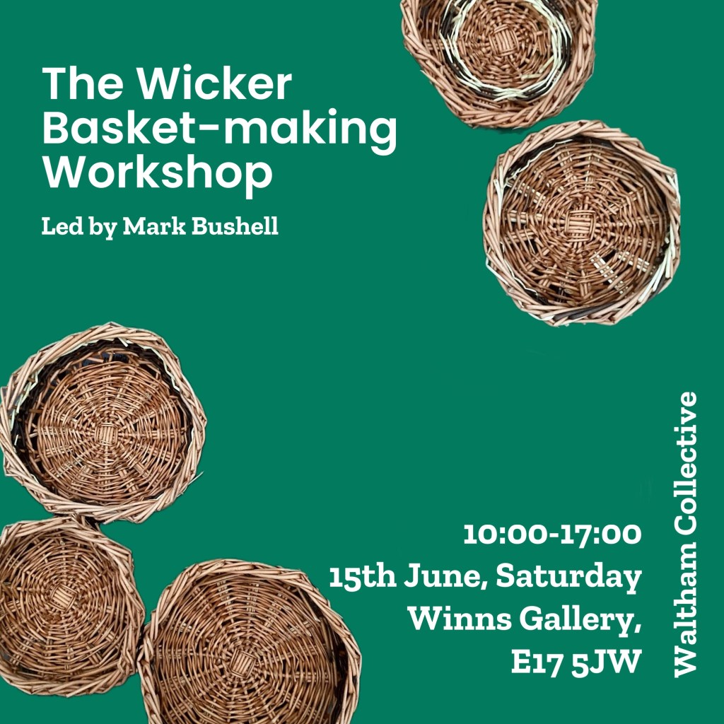 Margarita will be also leading the collage-making workshop on the 16th of June, 2024. The Wicker Basket-making workshop will be led by Mark Bushell. He will be teaching a traditional craft which has been widespread in the Walthamstow wetlands for generations.